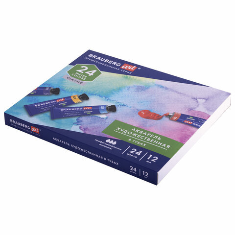 Акварель художественная в тубах НАБОР 24 цвета по 12 мл, BRAUBERG ART CLASSIC, 191765