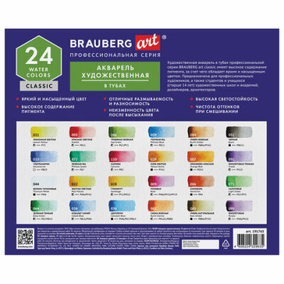 Художественная акварель профессионального качества в тубах BRAUBERG ART CLASSIC предназначена для живописи.