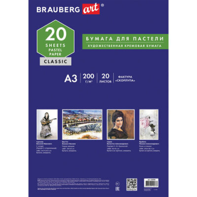 Бумага для пастели БОЛЬШАЯ А3, 20 л., слоновая кость ГОЗНАК 200 г/м2, тиснение Скорлупа, BRAUBERG ART, 126304