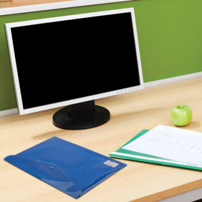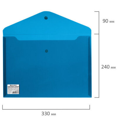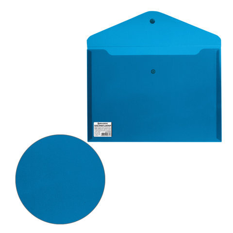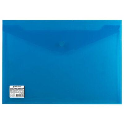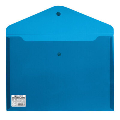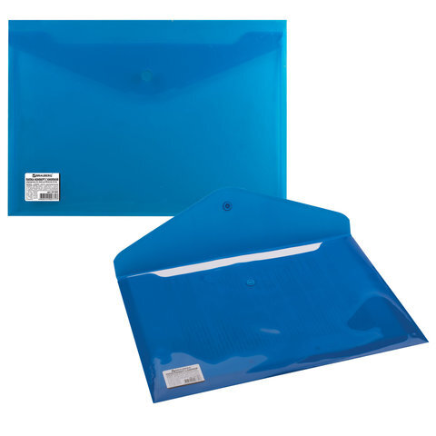 Папка-конверт с кнопкой BRAUBERG, А4, до 100 листов, непрозрачная, синяя, СВЕРХПРОЧНАЯ 0,2 мм, 221362