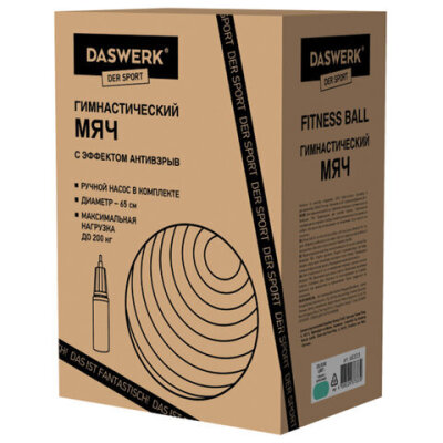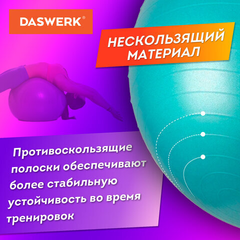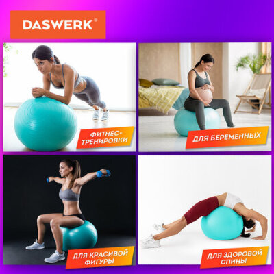 Мяч гимнастический (фитбол) 65 см с эффектом "антивзрыв", с ручным насосом, бирюзовый, DASWERK (ДАСВЕРК), 680015