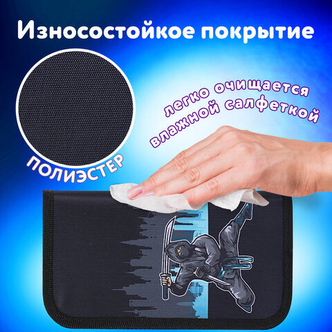 Пенал ЮНЛАНДИЯ, 2 отделения, полиэстер, 19х11 см, "Black Ninja", 271541