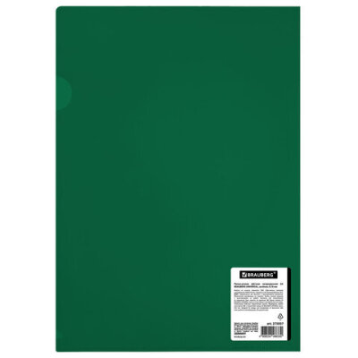 Папка-уголок жесткая, непрозрачная (тонированная), А4, BRAUBERG UNIVERSAL, зеленая, 0,18 мм, 273057