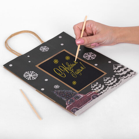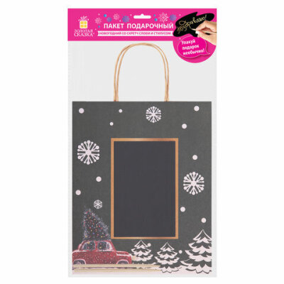 Пакет подарочный (1 штука) 21x14x26 см, скретч-слой + стилус, "NY Kraft", ассорти, ЗОЛОТАЯ СКАЗКА, 591966