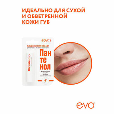 Гигиеническая помада ПАНТЕНОЛ EVO для сухой и обветренной кожи губ дарит длительную защиту и бережный уход.