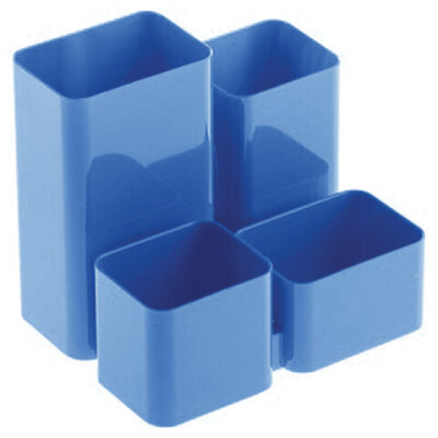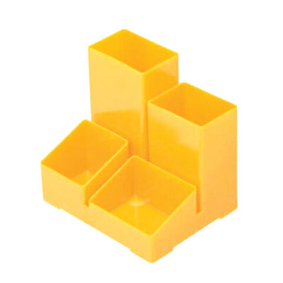 Эргономичная пластиковая подставка-органайзер с 4 отделениями для пишущих принадлежностей и канцелярских мелочей. Отличается удачным сочетанием вместительности и компактности. Прочный корпус, гладкая глянцевая поверхность. Без наполнения.
