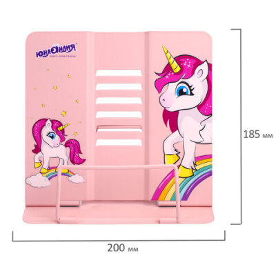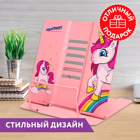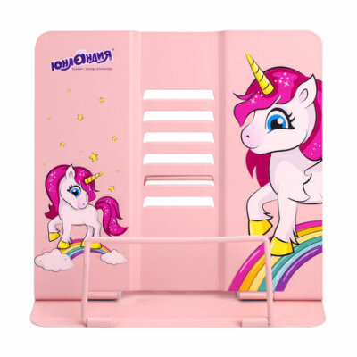 Подставка для книг и учебников ЮНЛАНДИЯ "Neon Unicorn", регулируемый наклон, металлическая, 237575