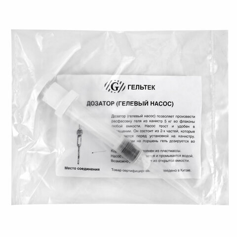 Дозатор для канистр 5 л для средств ГЕЛЬТЕК, диаметр пробки 40 мм, длина трубки 24 см