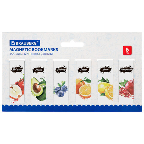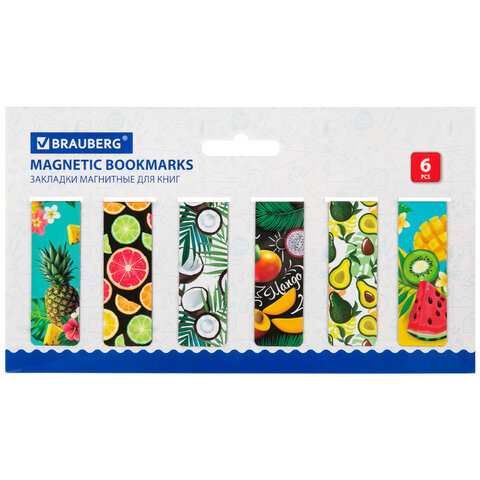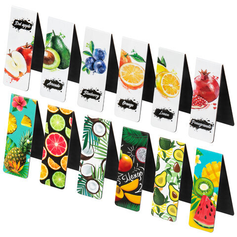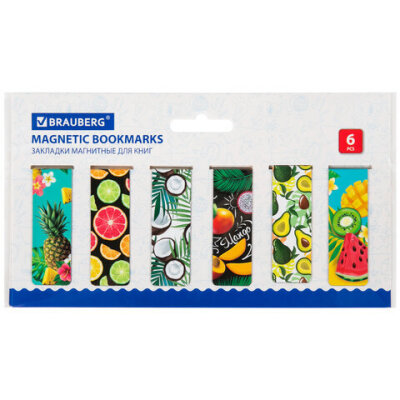 Закладки для книг МАГНИТНЫЕ, "FRUITS", набор 12 шт., 60x20 мм, BRAUBERG, 113173