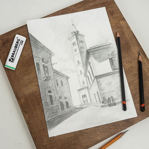 Ластик BRAUBERG "Line" предназначен для удаления надписей, сделанных чернографитными карандашами.