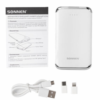 | Комплектация | адаптер Lightning , адаптер Type-C, кабель micro USB |