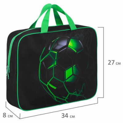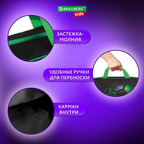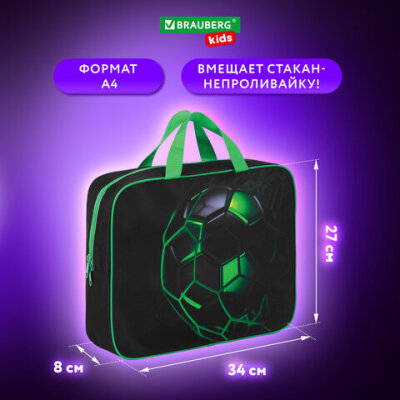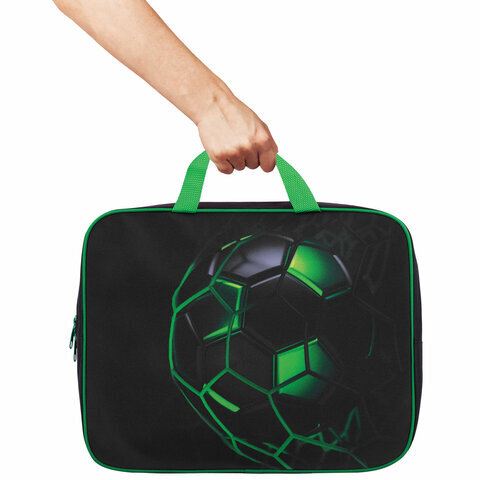 Папка на молнии с ручками BRAUBERG KIDS А4, 1 отделение, полиэстер, 80 мм, "Green ball", 272123