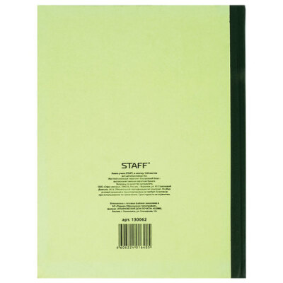 Книга учета 128 л., клетка, твердая, картон, блок офсет, нумерация, А4 205х287 мм, STAFF, 130062