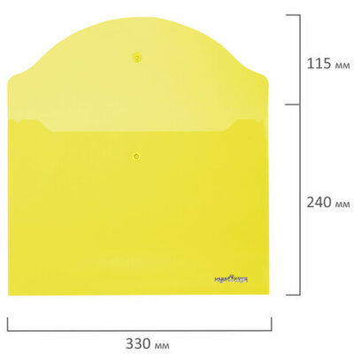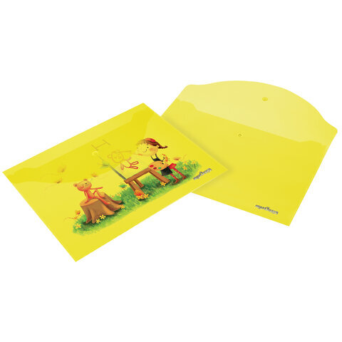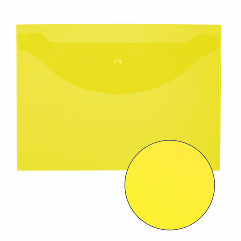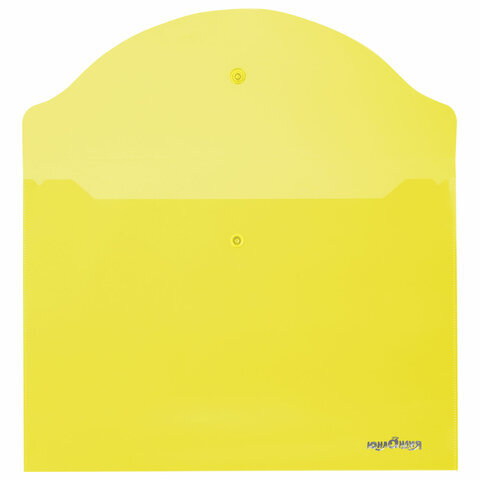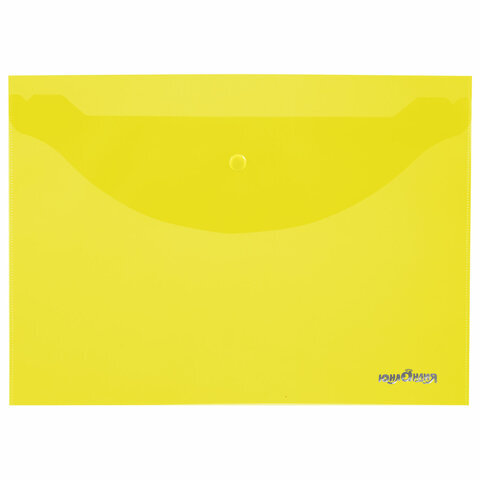 Папка-конверт с кнопкой ЮНЛАНДИЯ, А4, до 100 листов, прозрачная, желтая, 0,18 мм, 228668
