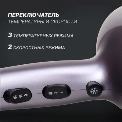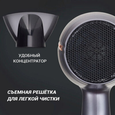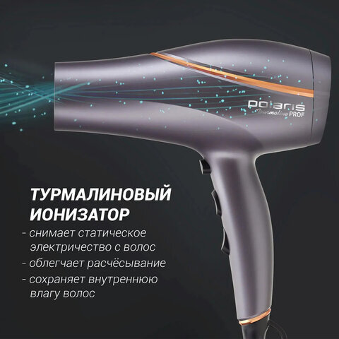 Фен POLARIS PHD 2290Ti Tourmaline, 2200 Вт, 2 скорости, 3 температурных режима, графитовый, 49824