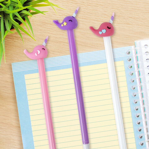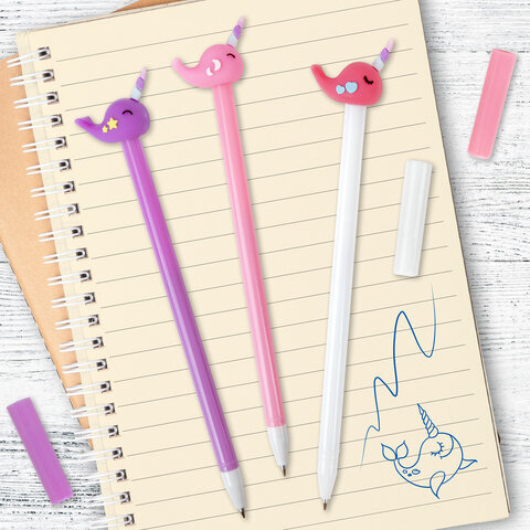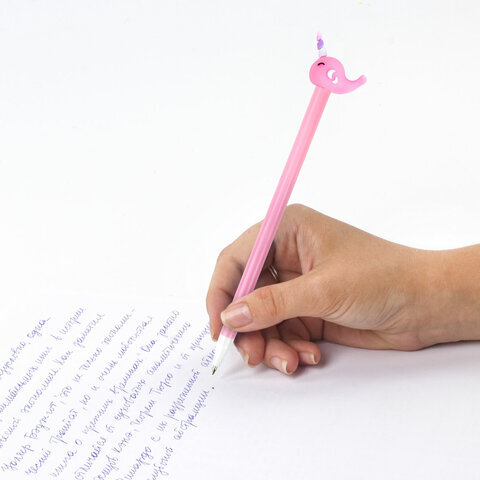 Шариковая ручка ЮНЛАНДИЯ "Кит-Единорог" с милой игрушкой на корпусе.