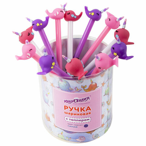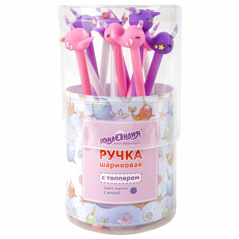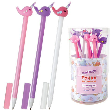 Ручка с топпером шариковая ЮНЛАНДИЯ "Кит-Единорог", корпус ассорти, СИНЯЯ, пишущий узел 0,7 мм, 143783
