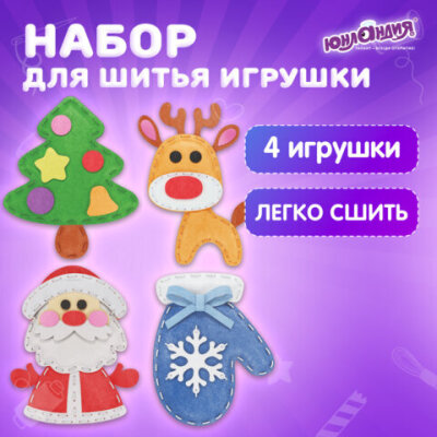 Набор для шитья игрушки из фетра "Зимний", 4 игрушки, ЮНЛАНДИЯ, 664735