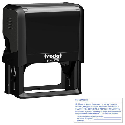 Оснастка для штампа, размер оттиска 75х38 мм, синий, TRODAT 4926, подушка в комплекте, 53109