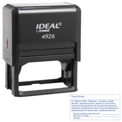 Оснастка для штампа, размер оттиска 75х38 мм, синий, TRODAT IDEAL 4926 P2, подушка в комплекте, 125432