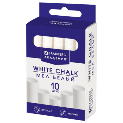 Мел белый круглый мягкий 10 штук, BRAUBERG "АКАДЕМИЯ", картонная упаковка, европодвес (АЛГЕМ), 271147