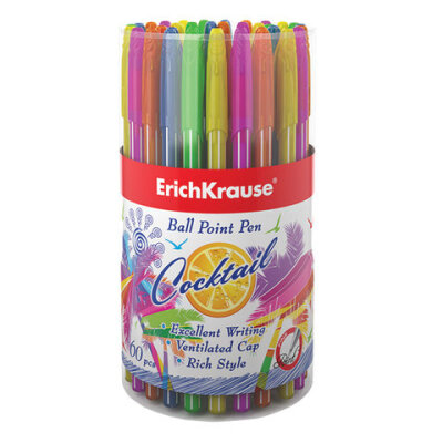 Яркая одноразовая шариковая ручка Erich Krause Cocktail с игольчатым типом пишущего узла.