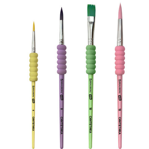 Набор из четырёх кистей разного размера c мягкой EVA-вставкой BRAUBERG KIDS позволяет начинающим художникам решать любые творческие задачи в детском саду, школе и дома.