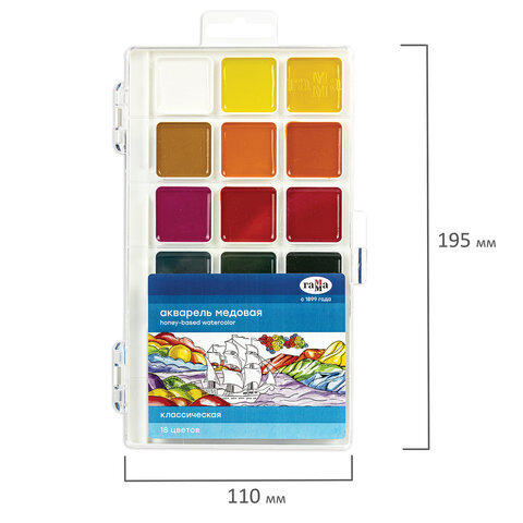 Краски акварельные ГАММА "Классическая", 18 цветов, медовая, пластиковый корпус, европодвес, 1009196