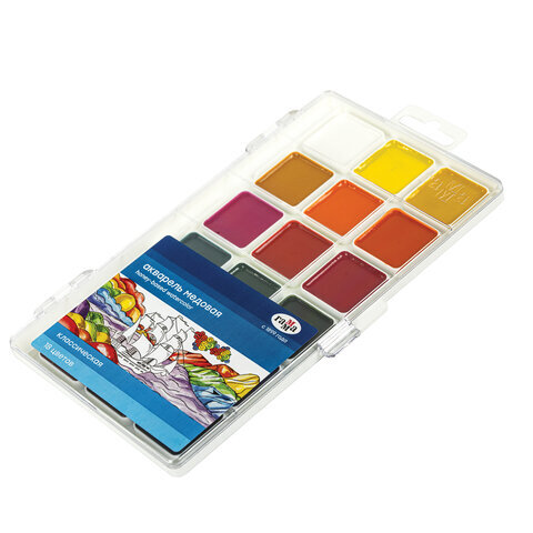 Медовая акварель в обновленной подложке: больший объем краски в кюветах – больше возможностей для творчества. Благодаря качественному прозрачному связующему в составе, цвета акварели яркие и чистые.