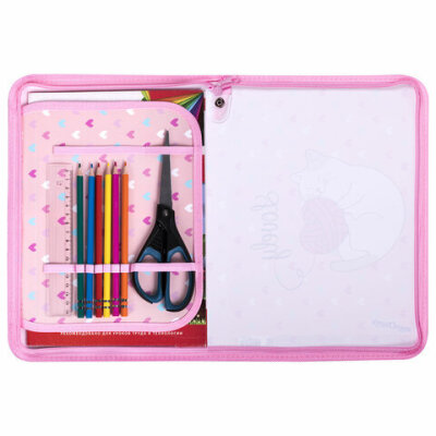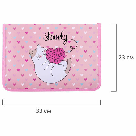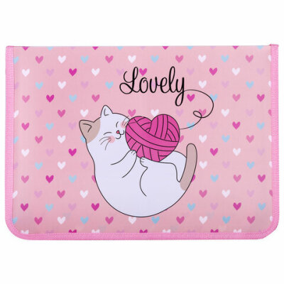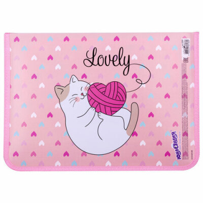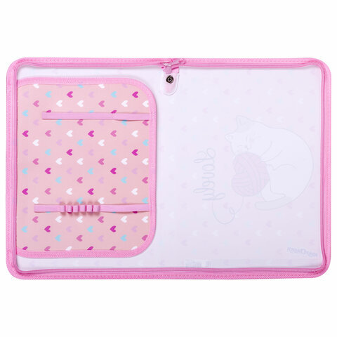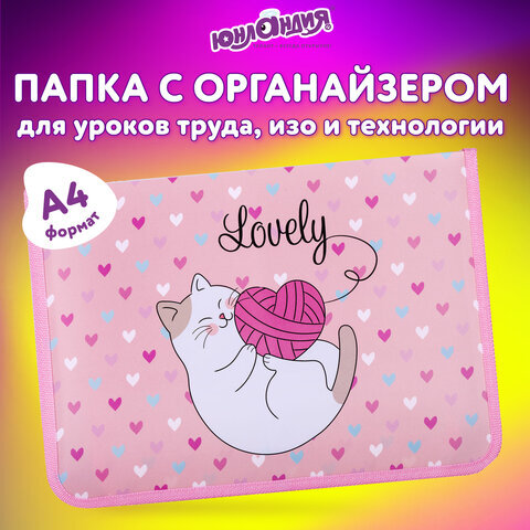Папка для труда на молнии ЮНЛАНДИЯ А4, 1 отделение, откидная планка, органайзер, "Fluffy cat", 270982