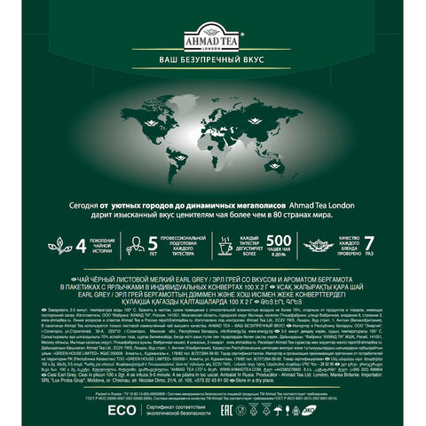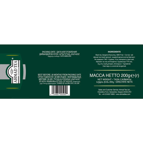 Чай AHMAD "Earl Grey" черный с ароматом бергамота,100 пакетиков в конвертах по 2 г, 595i-08