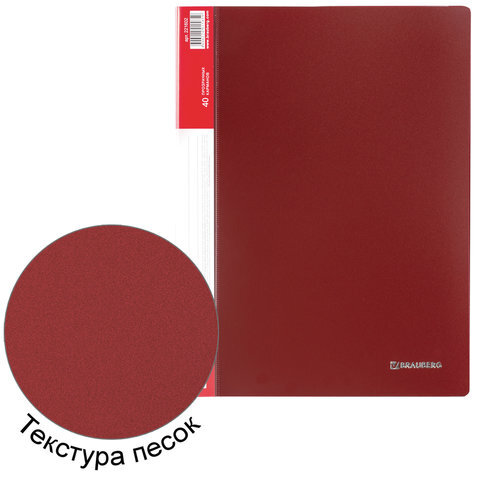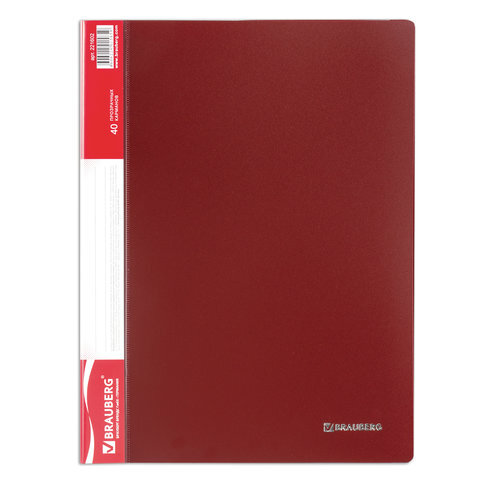 Папка 40 вкладышей BRAUBERG стандарт, красная, 0,7 мм, 221602