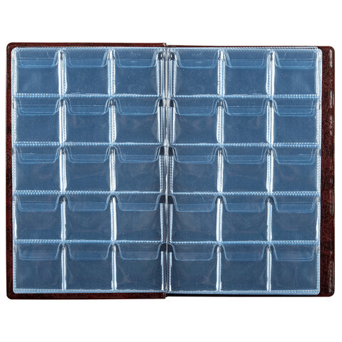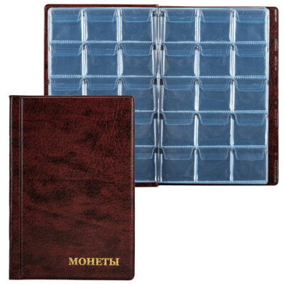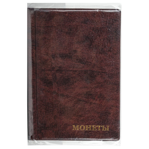 Альбом нумизмата для 240 монет, 125х185 мм, ПВХ, коричневый, STAFF, 238080