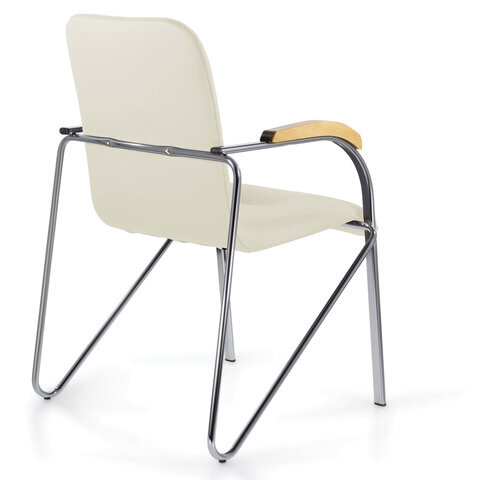 Кресло BRABIX "Samba CF-105 BOX-2", хром каркас, накладки "бук", кожзам бежевый, разобрано, 532762