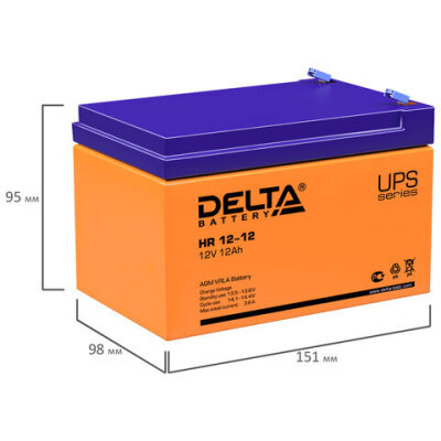 Аккумуляторная батарея для ИБП любых торговых марок, 12 В, 12 Ач, 151х98х95 мм, DELTA, HR 12-12