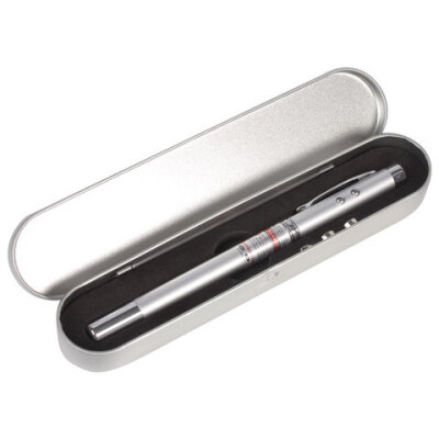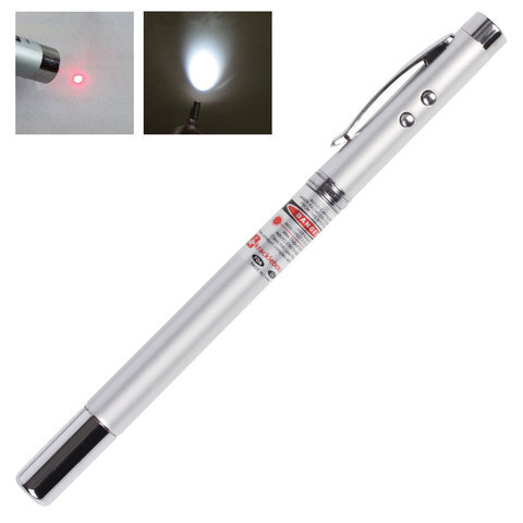 • Лазерная указка 5 в 1: с точкой красного свечения, LED-фонарем, магнитом, телескопической указкой и шариковой ручкой. Является эффективным средством для привлечения внимания аудитории к информации, отображенной на доске или экране.