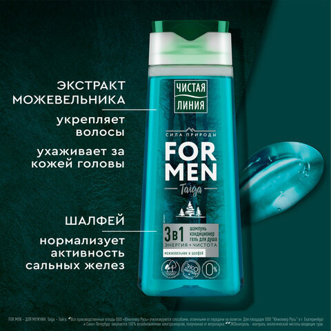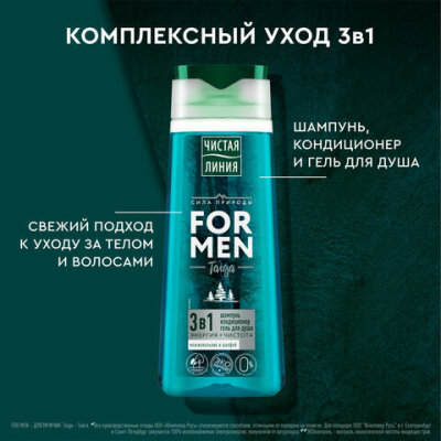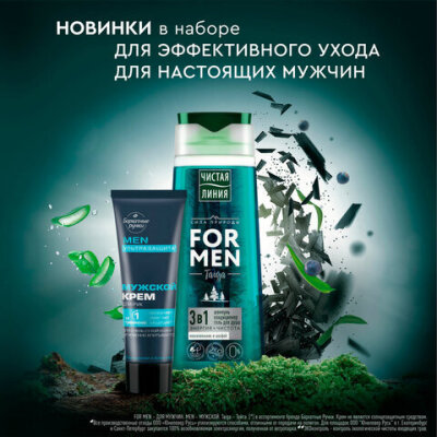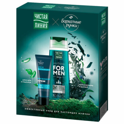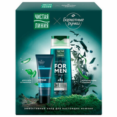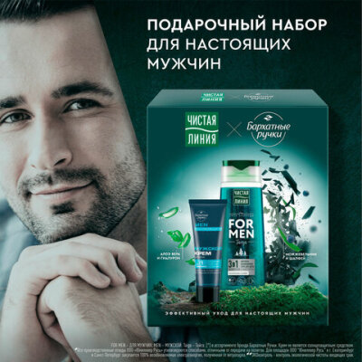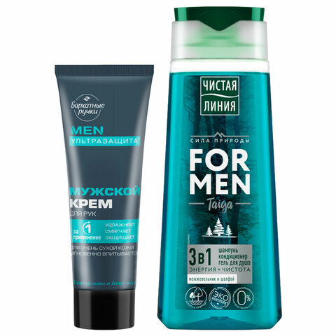 Подарочный набор: шампунь/гель для душа 250 мл ЧИСТАЯ ЛИНИЯ + Крем для рук 80 мл БАРХАТНЫЕ РУЧКИ FOR MEN