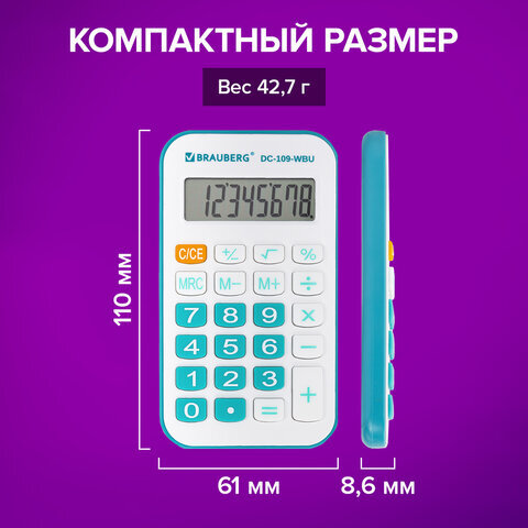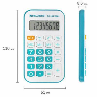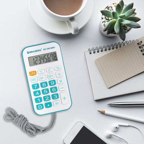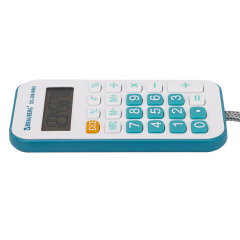 • Карманный калькулятор со шнурком BRAUBERG DC-109-WBU – компактный и надежный помощник в работе и учебе. Его удобно использовать в офисе, школе и в быту.