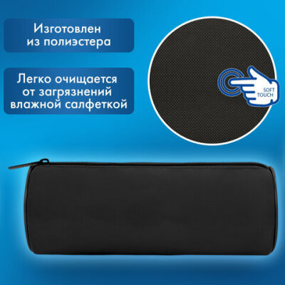 Пенал-тубус BRAUBERG, с эффектом Soft Touch, мягкий, черный, 22х8 см, 272302