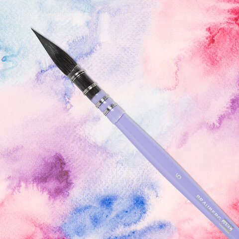 Кисть BRAUBERG прекрасно подходит для работы жидкими красками. Не теряет жесткость при намокании и одновременно позволяет удерживать максимальное количество краски в пучке. Предназначена для растушевки краски, смешивания и смягчения контрастов и фактуры.