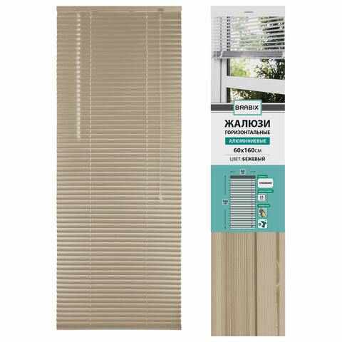 Жалюзи горизонтальные BRABIX 60х160 см, АЛЮМИНИЙ, цвет бежевый, 608637