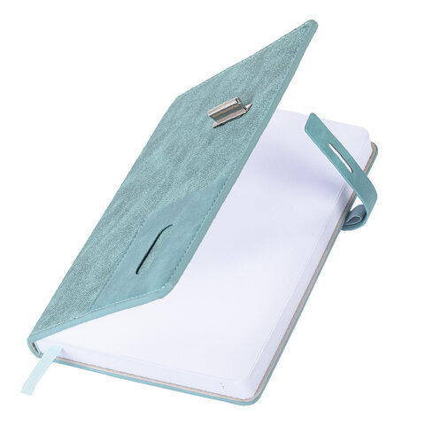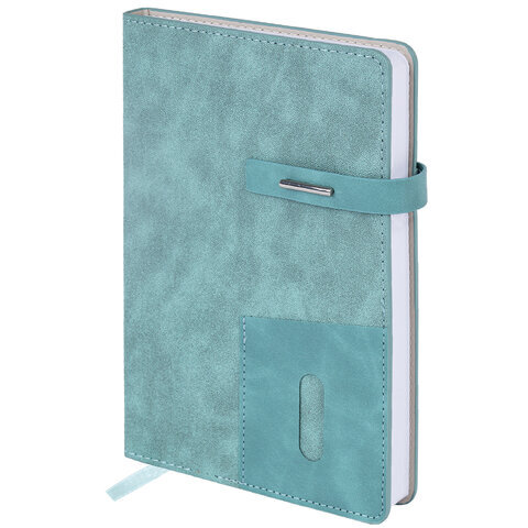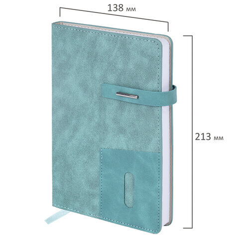 Ежедневник недатированный А5 138х213 мм BRAUBERG "Cowboy", под кожу, застежка 160 л., голубой, 116197