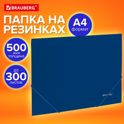 Папка на резинках А4 BRAUBERG UNIVERSAL, синяя, до 300 листов, 0,5 мм, 273037