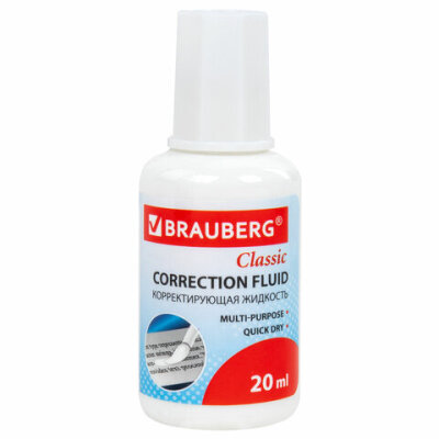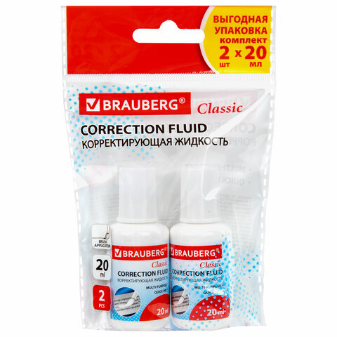 Комплект корректирующей жидкости BRAUBERG "Classic" обеспечивает аккуратное исправление печатного или рукописного текста. Выгодный вариант для офиса, школы и дома!