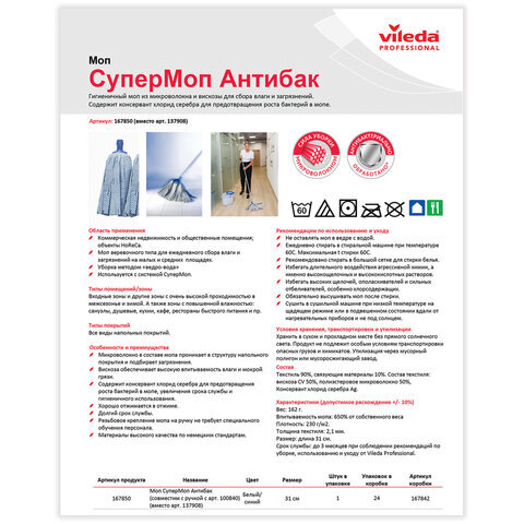 Нетканый материл, используемый в насадке "Антибак", имеет ряд преимуществ по сравнению с хлопковыми МОПами. Нетканая структура и смесь из хлопка и полиэстера дают высокую степень абсорбции – впитывает в 4 раза больше собственного веса.