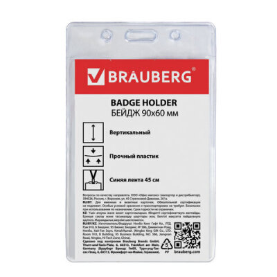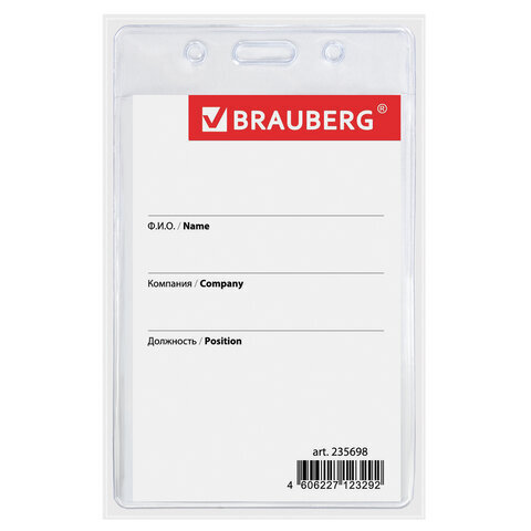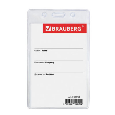 Вертикальный бейдж BRAUBERG для именной карточки предназначен для идентификации сотрудников в компаниях, а также на семинарах, тренингах, презентациях и других мероприятиях.