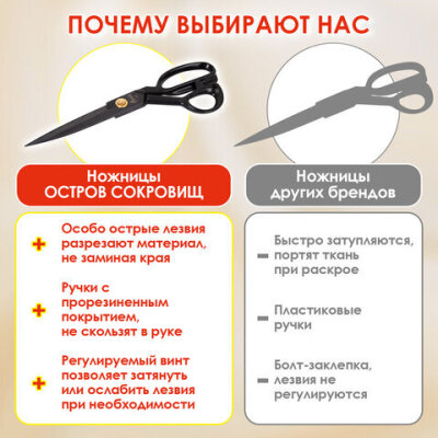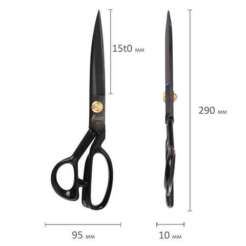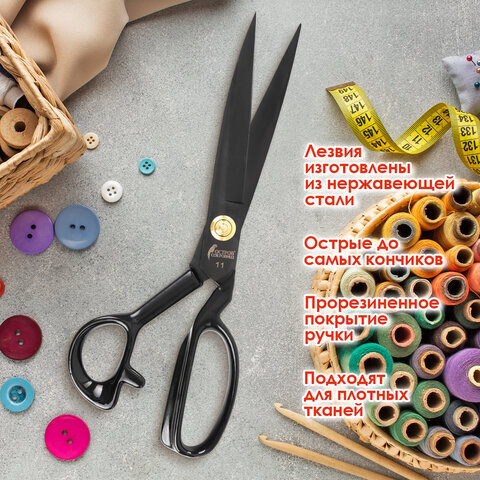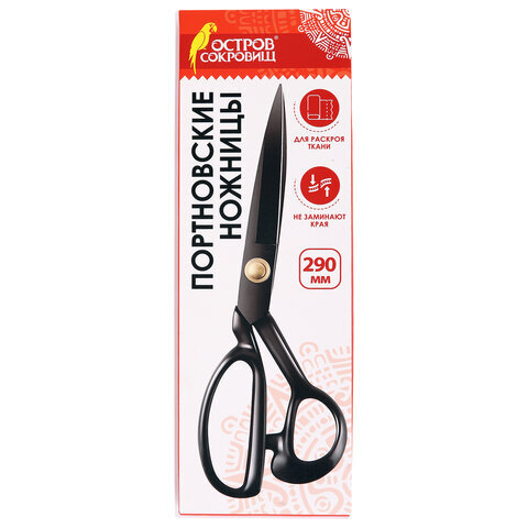 Ножницы портновские 290 мм, КЛАССИЧЕСКИЕ, черные, ручки с силиконовым покрытием, ОСТРОВ СОКРОВИЩ, 665599