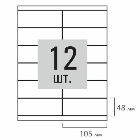 Этикетка самоклеящаяся 105х48 мм, 12 этикеток, белая, 70 г/м2, 500 л., LOMOND, 2100512ТЕХ