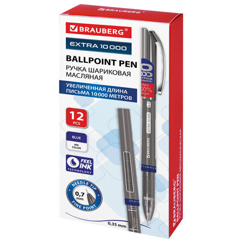• Шариковая ручка BRAUBERG "EXTRA 10000" прослужит вам долго – длина письма рассчитана на 10 000 метров!