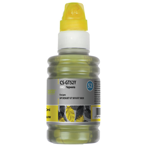 Чернила CACTUS (CS-GT52Y) для СНПЧ HP DeskJet GT 5810/5820, желтые, 0,1 л